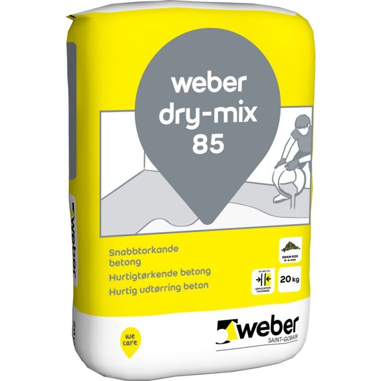 Dry-Mix 85 används till betonglagnings- och gjutningsarbeten. Betongen är avsedd att användas vid gjutning i skikttjocklekar 40–300mm. Betongen är mycket lämplig som utfyllnads och grovavjämning i samband vid våtrum men också som fogfyllnadsbetong eller elementfogbruk där en snabb uttorkning är önskvärd. För att garantera bästa resultat och säkerställa en alkalitetsspärr bör betongytan beläggas med en självtorkande eller normaltorkande avjämningsmassa (weberfloor 120 Reno eller weberfloor 140 Nova).