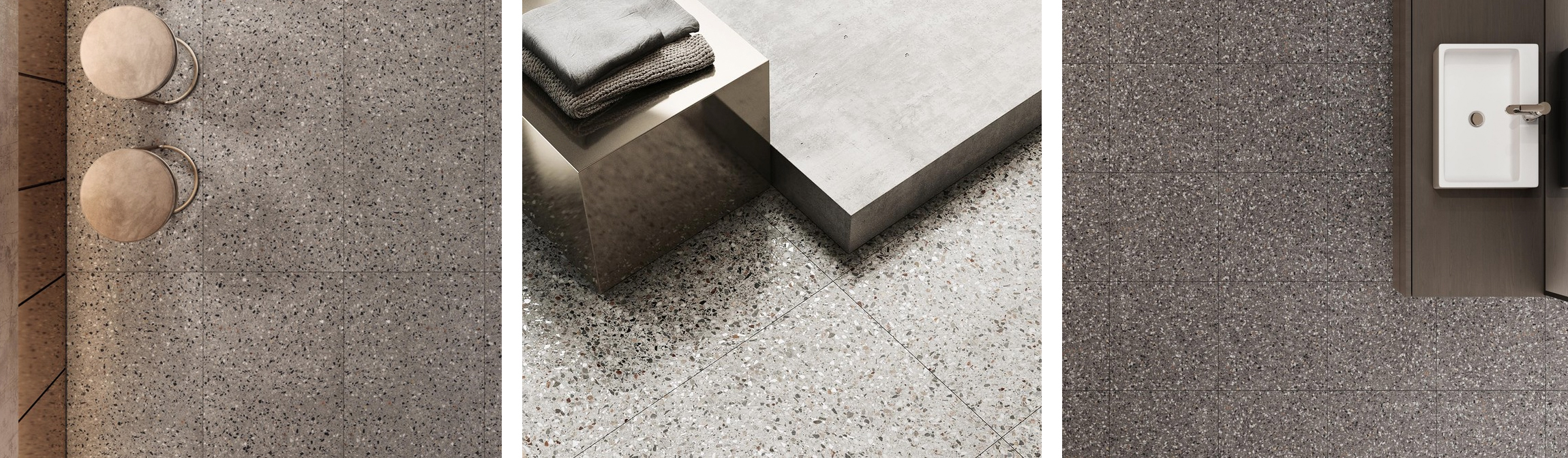 En serie inspirerad av klassisk Terrazzo som har använts sedan antika Grekland. De senaste åren har Terrazzo mest kopplats till kommersiella byggnader men är idag ett mycket trendigt mönster i privata miljöer och hittas i varje inredningstidning. Serie VM bjuder på Terrazzo i fyra toner.